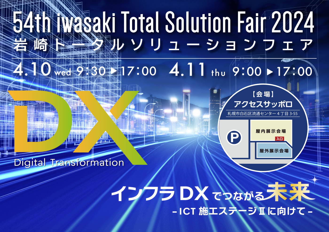 このような外部環境の激しい変化の中、第54回岩崎トータルソリューションフェアを「インフラDXでつながる未来」というテーマをもとに開催する運びとなりました。