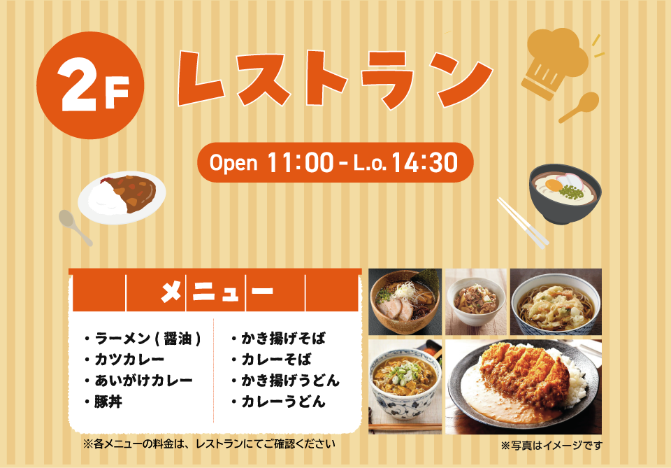 お食事の際は 2F レストラン、ご休憩の際は 1F カフェスペースをご利用いただけます。